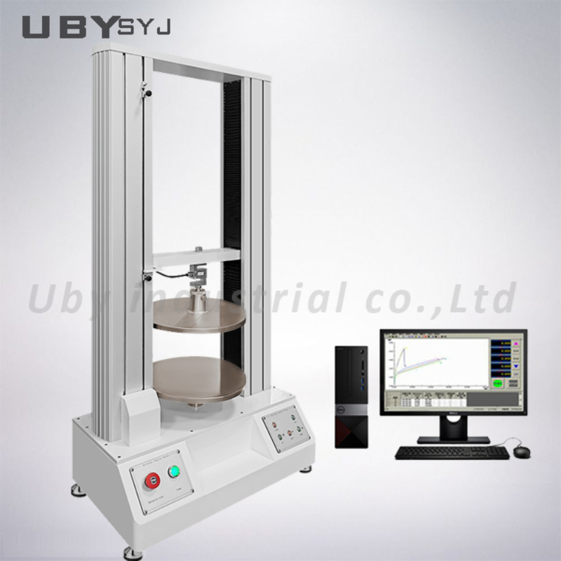 This materials testing machine is designed for comprehensive testing of tensile, compression, bending, peel, shearing force, peeling force, modulus of elasticity, and elongation properties across various materials including metal, plastic, rubber, textile, synthetic chemicals, wire and cable, leather, packaging, tape, film, and solar cells.